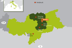 Mühlbach, Rio di Pusteria in South Tyrol can easily and conveniently be reached via the motorway Stuttgart - Munich - Rosenheim - Innsbruck