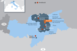 The closest airports are those in Bolzano/Bozen (50 km), Innsbruck (85 km) and Verona Villafranca (190 km). For some reasons interesting could be also the airports of Milano Bergamo (280 km), because served frequently by low cost carriers and Munich 260 km, because of his size and its wide connections.